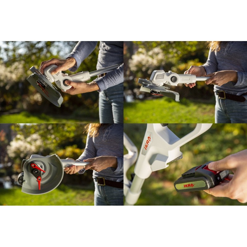 Free Warranty: 24 mėn.Practicality, convenience, high quality and reliability are the features of IKRA garden equipment. This trimmer has a 5-position tilting head to help you reach even hard-to-reach places, and thanks to the ability to cut in a vertical position, you will be able to cut the grass right next to the fence. The product has an easily adjustable telescopic handle and edge roller, the nylon blades cutting system will allow you to easily cut thick grass and bushes.