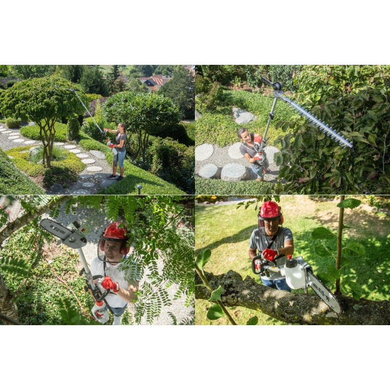 The IECH 1000 is a great solution for those who wants to have both a hedge and a trees pruner in their yard. The 2in1 device will save you storage space and money. The tool can prune branches with 7-position cutting angle with a low-vibration chain from the Oregon kit. The blades of the hedge trimmer are double-action.