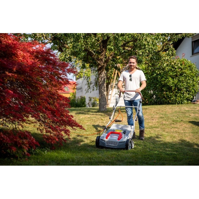 See aiatööriist on 2in1 muru raker / scarifier koos kergesti vahetatava kassetitrumiga. Sellel tootel on keskne kõrguse reguleerimine, ergonoomiline käepide ja mugav lüliti.