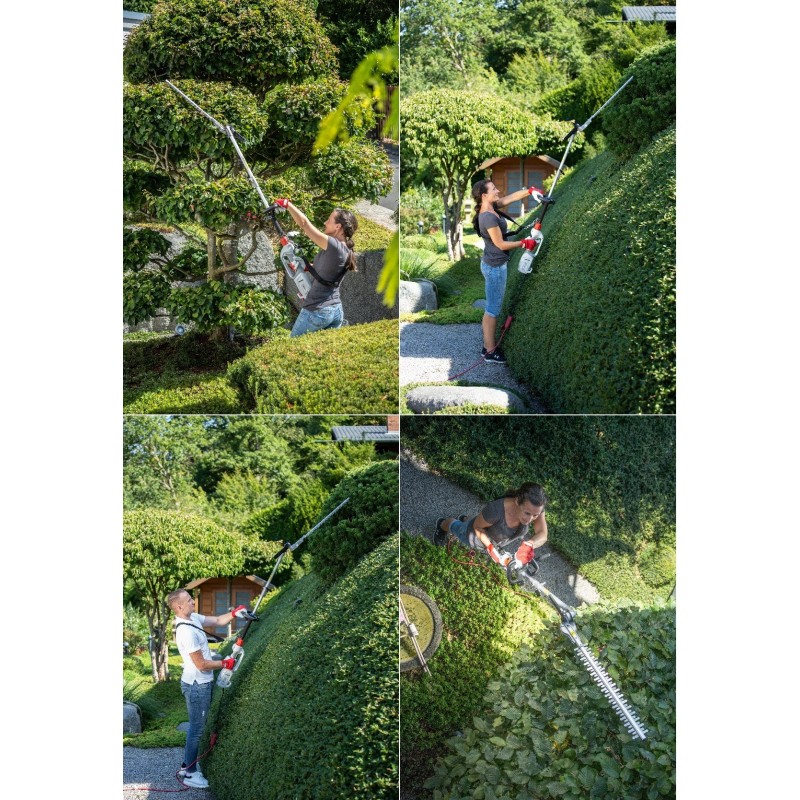IECH 1000 - отличное решение для тех, кто хочет иметь во дворе и живую изгородь, и секатор для деревьев. Устройство 2в1 сэкономит вам место для хранения и деньги. Инструмент может обрезать ветки с 7-позиционным углом среза с помощью цепи с низким уровнем вибрации из комплекта Oregon. Лезвия кустореза двойного действия.
